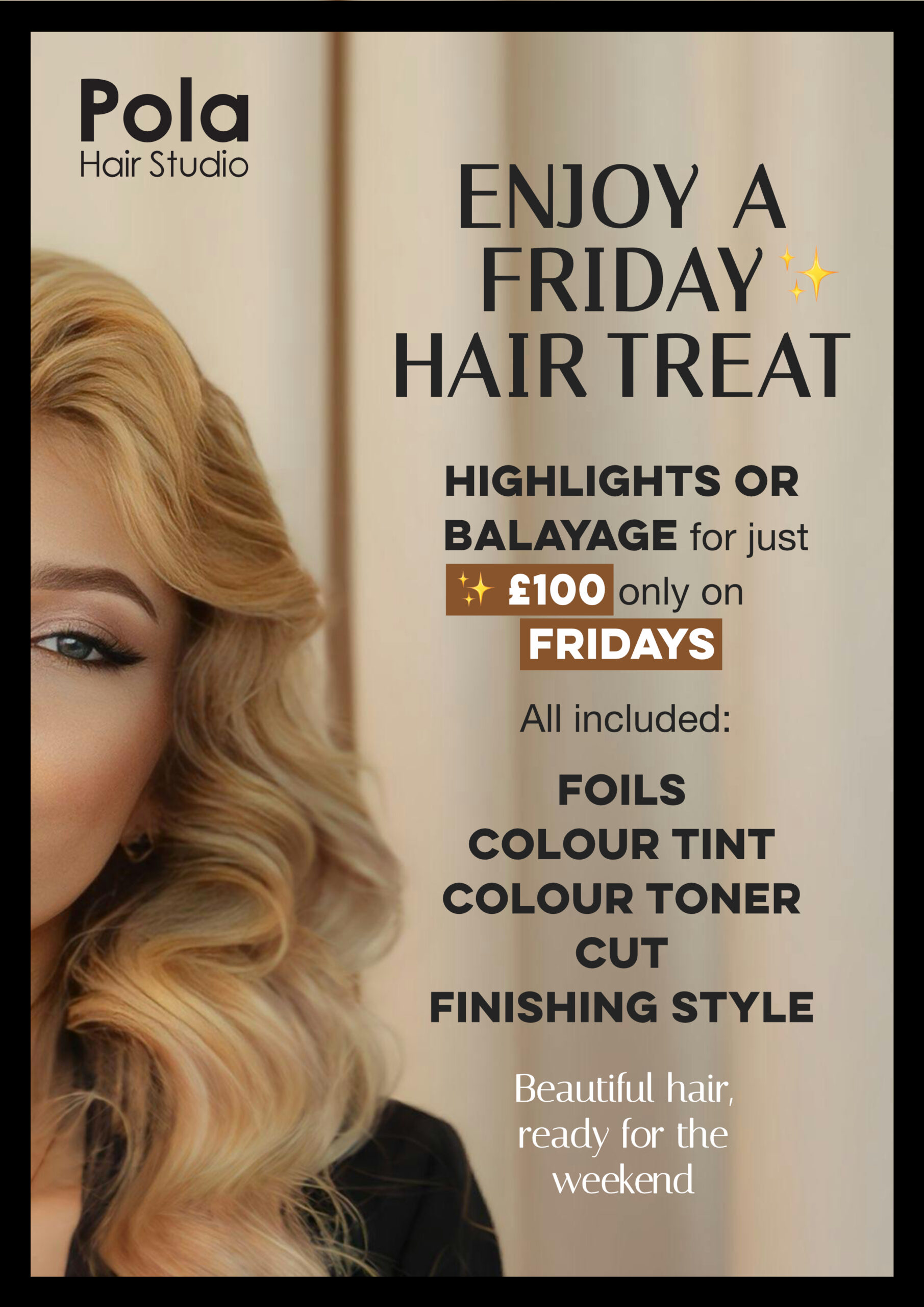 Pola Hair Studio always offers our highest level of service. We have a whole range of offers so make sure you keep visiting our website for exclusive web deals just for you. Book an appointment and reference the website for the offer.